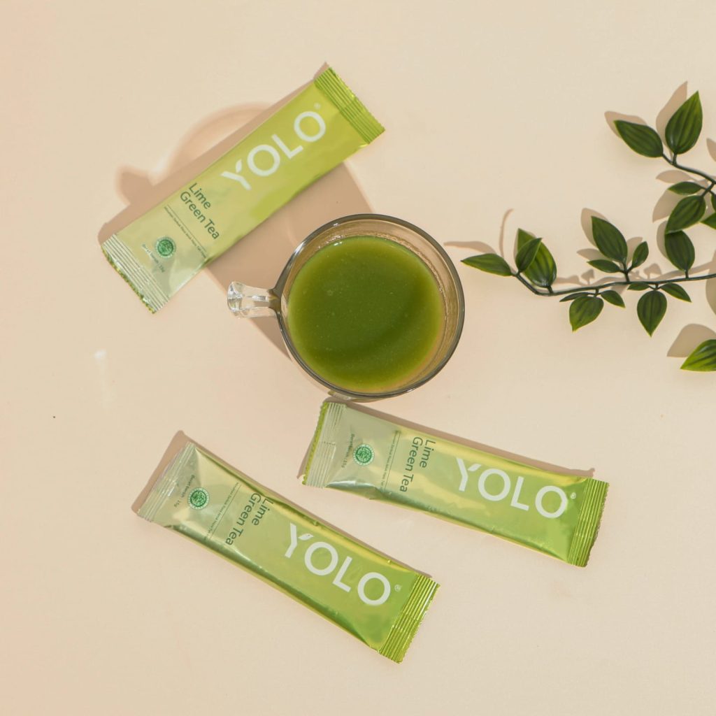 Salah satu minuman yang mengandung kolagen dari buah jeruk dan kiwi adalah YOLO Lime Green Tea.